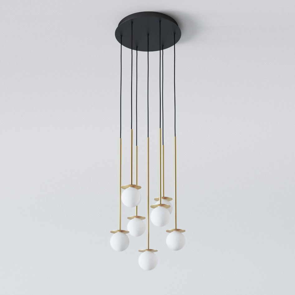 COTTON PANEL RH25, fi100 wisząca LED 7x2,7W/298lm/3000K, 230V, przewód czarny, kolor złota (gładki mat)
