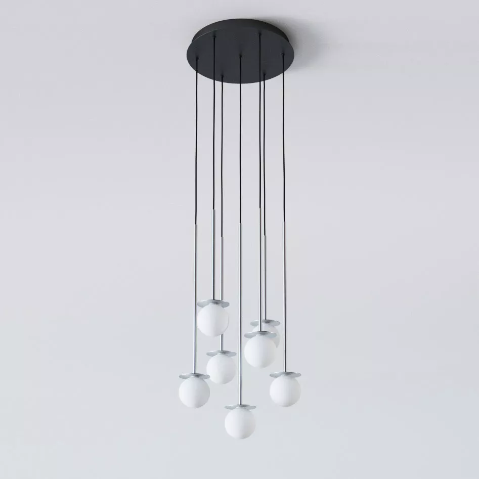 COTTON PANEL RH25, fi100 wisząca LED 7x2,7W/298lm/3000K, 230V, przewód czarny, kolor srebra (gładki mat)