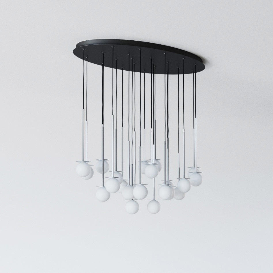 COTTON PANEL RH59 elipsa 1100x600, fi100 wisząca LED 22x2,7W/298lm/3000K, 230V, przewód czarny, kolor srebra (gładki mat)