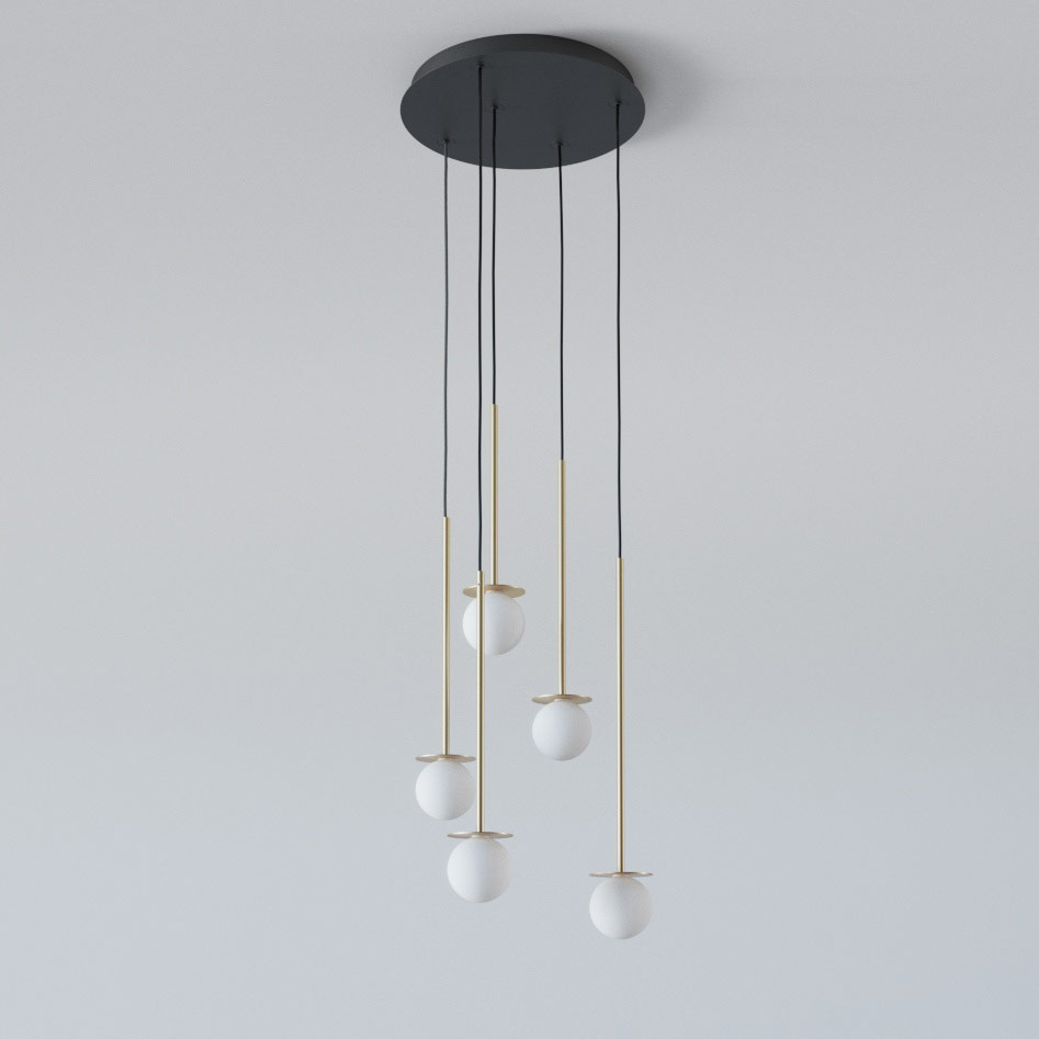 COTTON PANEL RH19, fi100 wisząca max.5x1,9W, G9, 230V, przewód czarny, kolor złota (gładki mat)