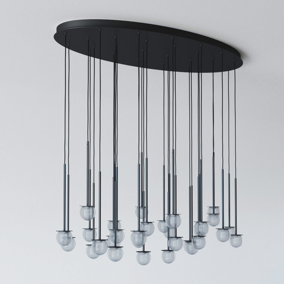 CLAR PANEL HF46 elipsa 1500x750, fi100 wisząca LED 30x2,7W/298lm/3000K, 230V, przewód czarny guma, czarny (mat) RAL 9017