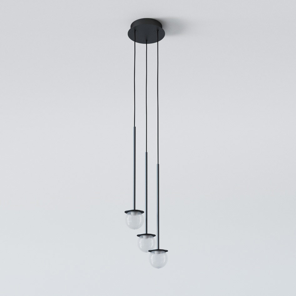 CLAR PANEL RH24, fi100 wisząca LED 3x2,7W/298lm/3000K, 230V, przewód czarny guma, czarny głęboki (mat struktura) RAL 9005