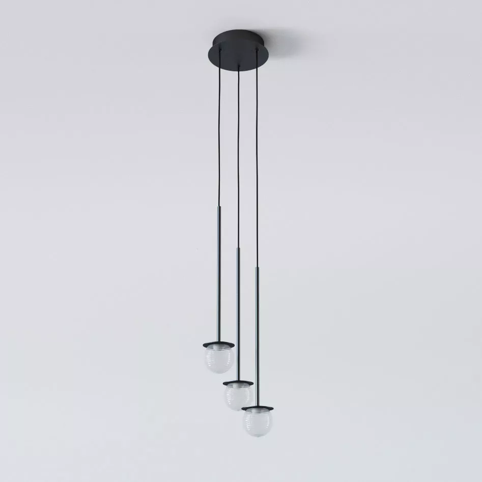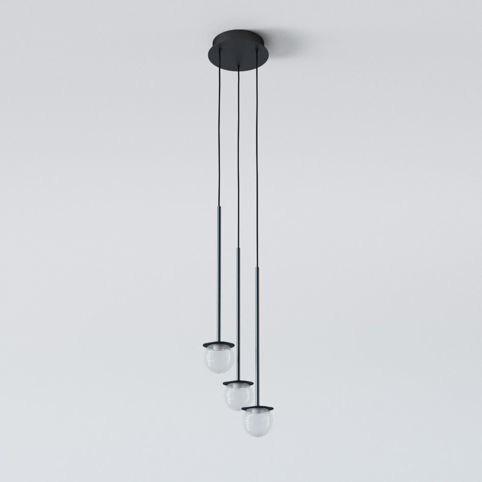 CLAR PANEL RH24, fi100 wisząca LED 3x2,7W/298lm/3000K, 230V, przewód czarny guma, czarny (mat) RAL 9017