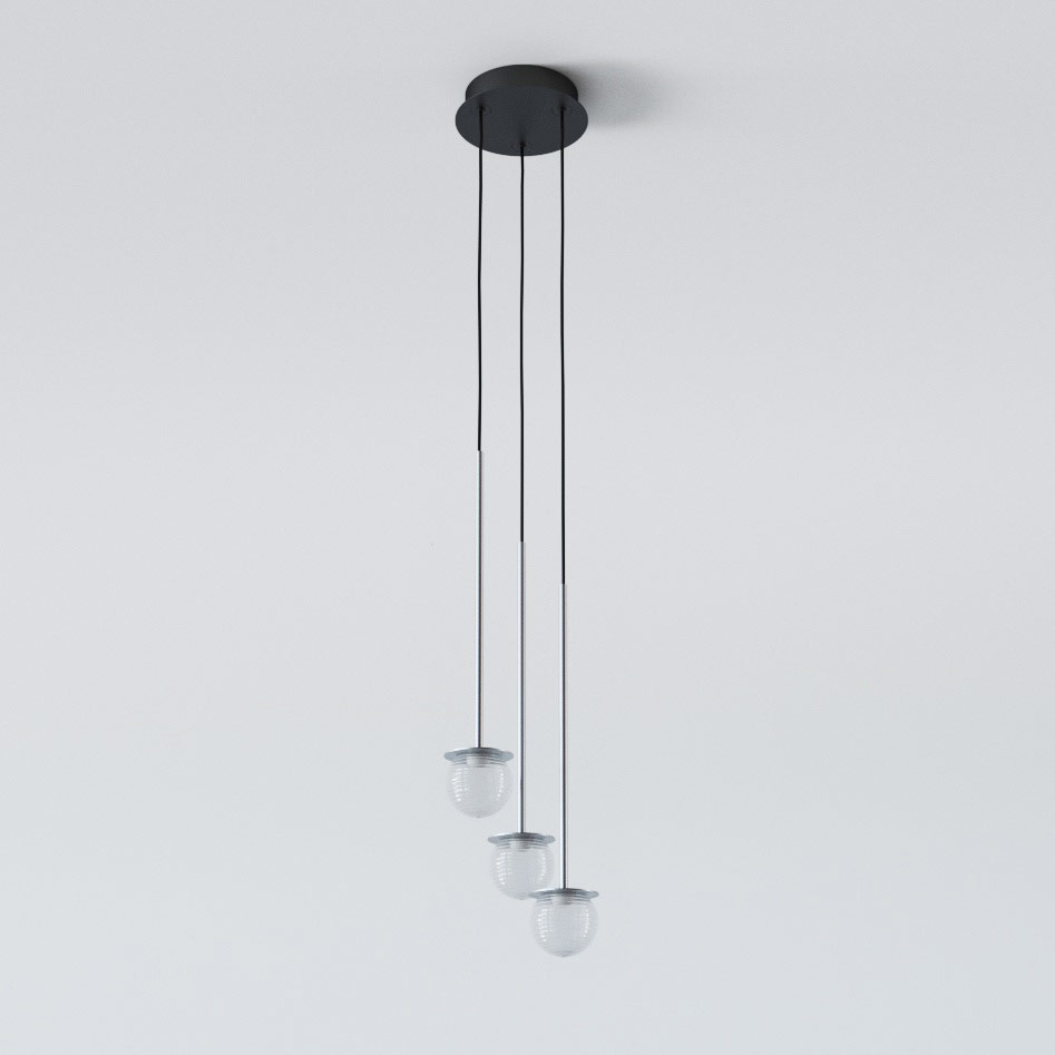 CLAR PANEL RH24, fi100 wisząca LED 3x2,7W/298lm/3000K, 230V, przewód czarny guma, kolor srebra (gładki mat)