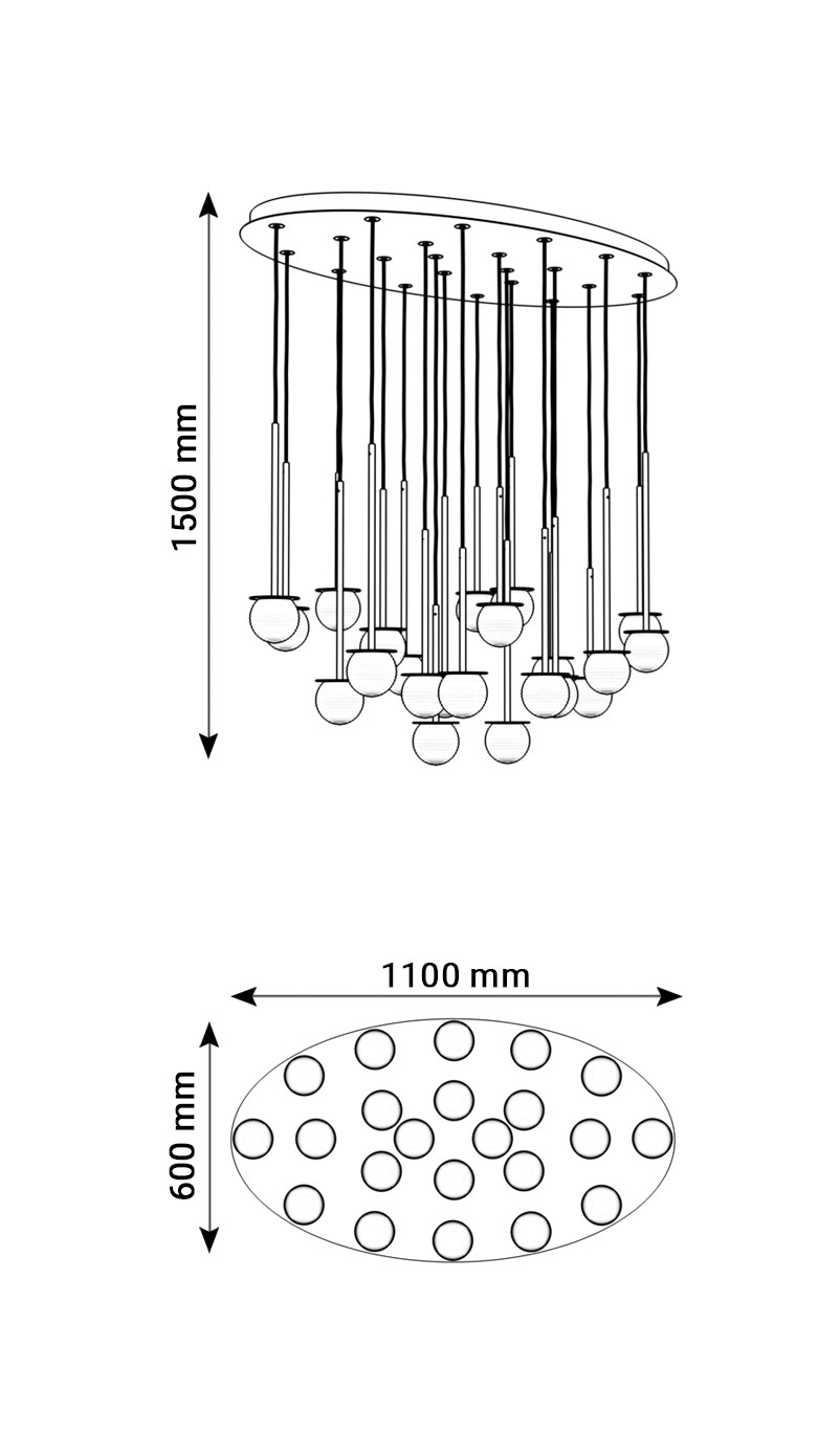 CLAR PANEL RH59 elipsa 1100x600, fi100 wisząca LED 22x2,7W/298lm/3000K, 230V, przewód czarny guma, szary grafitowy (mat struktura) RAL 7024