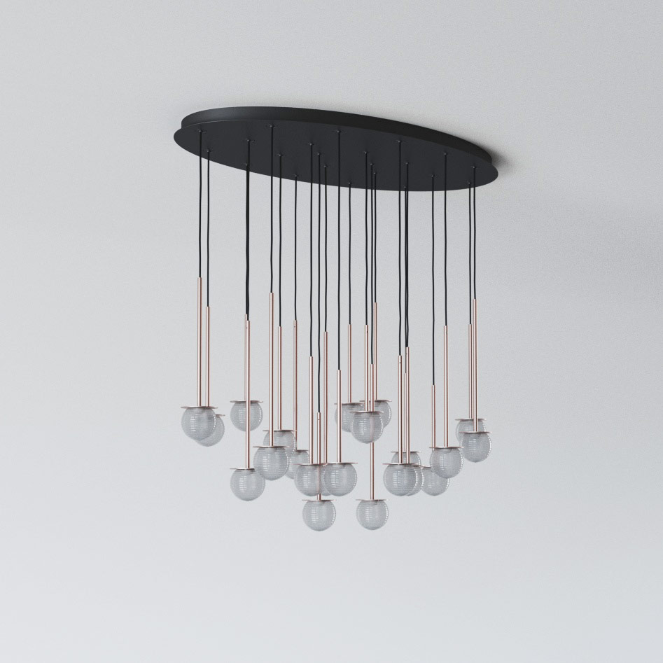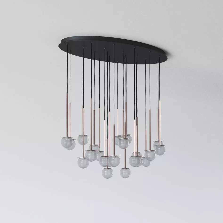 CLAR PANEL RH59 elipsa 1100x600, fi100 wisząca LED 22x2,7W/298lm/3000K, 230V, przewód czarny guma, kolor miedzi (gładki mat)