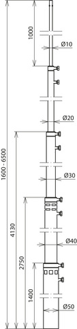 Teleskopowy maszt odgromowy, dł. 1,6-6,5 m, Al FS T D50 5500 6500 AL