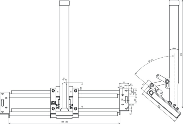 Wspornik montażowy na krokiew dachu do bocznego mocowania rury wsporczej DASH D48 AS600.750 STTZN