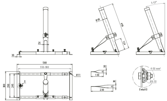Wspornik montażowy na dach metalowy do bocznego mocowania iglicy odgromowej o śr. 40 mm lub rur wsporczych HVI MDH D48 VB550.900 V2A