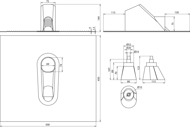 Przepust dachowy do rur i masztów o śr. 10/16/48 mm do montażu na dachu spadzistym (zestaw: płytka aluminiowa, gumowy przepust, taśma uszczelniająca), kolor czarny DADS D10 16 48 AL SCH