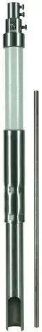 Rura wsporcza, GRP/stal nierdzewna, z wyprowadzeniem bocznym na statywy, z końcówką przyłączeniową wewnątrz i wyrównawczym elementem sprężynowym do przewodu HVI long, do odseparowanego (izolowanego) ustawiania urządzeń piorunochronnych z iglicą odgromową. Pozwala zachować odstęp separujący od elementów przewodzących prąd zgodnie z DIN EN 62305-3 (VDE 0185-305-3). Rura Ø50 mm z tworzywa sztucznego wzmocnionego włóknem szklanym (GRP), odporna na promieniowanie UV, kolor jasnoszary, współczynnik materiałowy km = 0,7. Wykonanie jednoczęściowe, do łączenia z iglicą odgromową (Ø10 mm, długość 1000 mm) ze stali nierdzewnej.