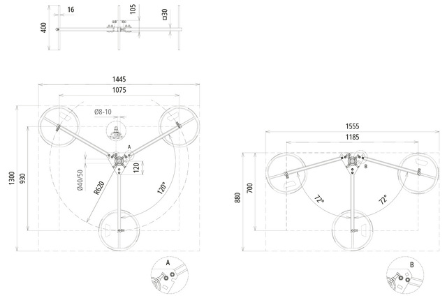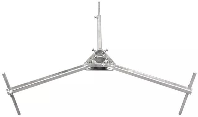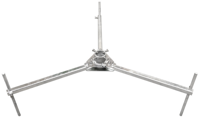 Statyw na trzech nogach do swobodnego ustawiania rur wsporczych DEHNiso-Combi (Ø50, długość 3200 mm). Do ustawiania na podstawach betonowych do montażu klinowego, bez dodatkowego mocowania do elementów konstrukcyjnych. Z możliwością kompensacji nachylenia dachu do maks. 10°. Wykonanie składane, specjalnie do przewodu HVI poprowadzonego wewnątrz rury wsporczej. Aby zachować promień gięcia przewodu HVI na dole statywu na trzech nogach, dwie betonowe podstawy są umieszczone poniżej nogi, a jedna powyżej.