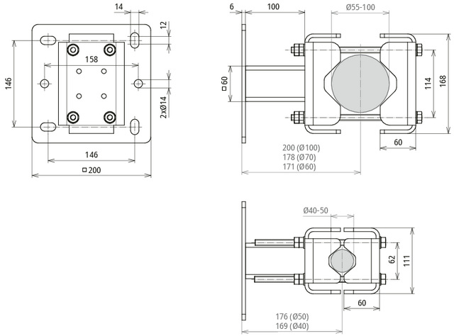 Uchwyt do masztów o śr. 55-100 mm, mocowanie naścienne WB D55.100 SE WA150 STTZN