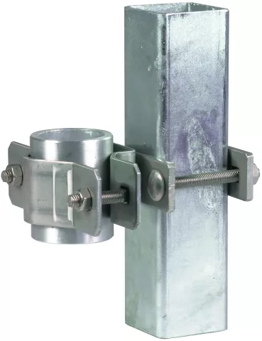 Zacisk na rurę do mocowania rur wsporczych (Ø50 mm) lub iglic odgromowych (Ø40 mm) np. kwadratowe profile drążone.