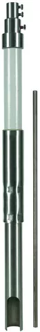 Rura wsporcza, GRP/stal nierdzewna, z wyprowadzeniem bocznym na statywy, z końcówką przyłączeniową wewnątrz i wyrównawczym elementem sprężynowym do przewodu HVI power, do odseparowanego (izolowanego) ustawiania urządzeń piorunochronnych z iglicą odgromową. Pozwala zachować odstęp separujący od elementów przewodzących prąd zgodnie z DIN EN 62305-3 (VDE 0185-305-3). Rura Ø50 mm z tworzywa sztucznego wzmocnionego włóknem szklanym (GRP), odporna na promieniowanie UV, kolor jasnoszary, współczynnik materiałowy km = 0,7. Wykonanie jednoczęściowe, do łączenia z iglicą odgromową (Ø10 mm, długość 1000 mm) ze stali nierdzewnej.