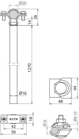 Drążek dystansujący, śr. 16 mm, dł. 1270 mm, z przyłączem wyrównawczym na śr. 20 mm, z zaciskiem MV, Al DIDH PAE 20 D16 1270 AL V2A