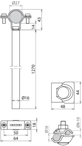 Drążek dystansujący, śr. 16 mm, dł. 1270 mm, z przyłączem wyrównawczym na śr. 27 mm, z zaciskiem MV, Al DIDH PAE 27 D16 1270 AL V2A