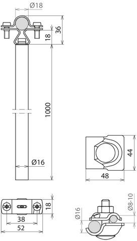 Wspornik dystansujący do ustanawiania regulowanego obszaru przyłączeniowego przewodu HVI light plus. Z zaciskiem MV do przyłączania do połączenia wyrównawczego (drut 16 mm / drut 8-10 mm).