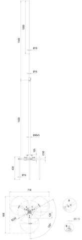 Wolnostojąca iglica odgromowa ze statywem na trzech nogach przetestowana zgodnie z normą DIN EN 62561-(1+2). Do ochrony struktur na dachu z możliwością dostosowania do nachylenia dachu do maks. 10°. Iglice odgromowe są zwymiarowane zgodnie z Eurokodem 1 (DIN EN 1991-1-4 + DIN EN 1991-1-4/NA). Wykonanie o wysokości 3000 mm, z zaciskiem przyłączeniowym do drutów okrągłych 8-10 mm.