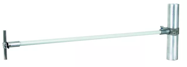 Wspornik dystansujący do rur wsporczych, do mocowania przewodów na rurach wsporczych, pozwala na zachowanie odstępu separującego zgodnie z normą DIN EN 62305 (VDE 0185-305-3).