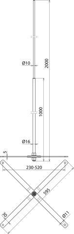 Iglica odgromowa do dachów metalowych, wysokość 2000 mm, do ochrony struktur na dachu, kopuł świetlikowych itd. Montaż do końców klamer (otwory Ø11 mm) za pomocą czterech wsporników dachowych. Wsporniki dachowe należy dobrać odpowiednio do profilu dachu np. okrągły rąbek stojący.