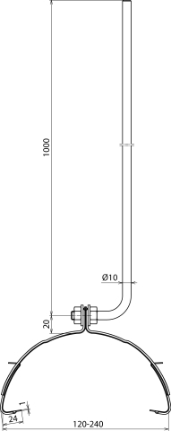 Iglica odgromowa do ochrony solarnych modułów grzewczych lub generatorów fotowoltaicznych lub innych struktur na dachach spadzistych. Montaż iglicy odgromowej opiera się na technice zaciskowej. Elementy regulowane stopniowo należy wcześniej dopasować do odpowiedniej średnicy gąsiora.