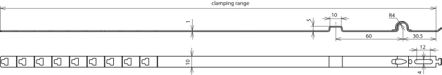 Wsporniki do układania przewodów odprowadzających na rurach spustowych. Wykonanie typu PS, bezśrubowe, z wytłoczeniami do cęgów, sztywne prowadzenie przewodu.