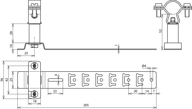 Wspornik dachowy z dwuśrubową płytką dociskową ze stali nierdzewnej do układania przewodu HVI, przewodu HVI light plus na powierzchniach dachowych dachów dwuspadowych. Wykonanie z perforowaną klamrą, do przewodów 20-23 mm (sztywne prowadzenie przewodu).