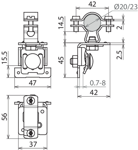 Wspornik dachowy na dach metalowy z rąbkiem stojącym, do przewodów HVI o śr. 20-23 mm, stal nierdzewna DLH SF ZS 20 23 V2A