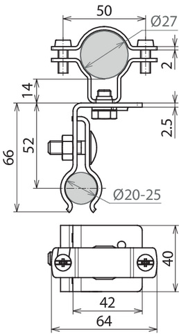Wspornik dachowy na dach metalowy z okrągłym rąbkiem stojącym, do przewodów HVI o śr. 27-30 mm, stal nierdzewna DLH RSF ZS 27 V2A