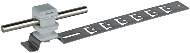 Wsporniki dachowe UNIsnap z perforowaną klamrą do mocowania zwodów i przewodów odprowadzających do powierzchni dachowych. Wykonanie z wstępnie uformowanymi punktami gięcia do zaginania i mocowania w dachówkach lub w łatach dachowych, ze wspornikiem DEHNsnap, wysokość 16 mm, luźne prowadzenie przewodu, z tworzywa sztucznego odpornego na oddziaływanie warunków atmosferycznych, odporne na promieniowanie UV, bezhalogenowe.
