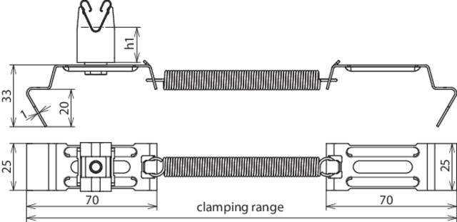 Wsporniki dachowe SPANNgrip do mocowania przewodów odgromowych do dachówek kalenicowych (gąsiorów) np. na dachy kryte dachówką. Do mocowania za pomocą sprężyny naciągowej ze stali nierdzewnej, ze wspornikiem DEHNgrip, luźne prowadzenie przewodu, regulowany z boku.