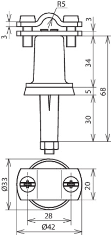 Wspornik dachowy z zaciskiem dwuśrubowym do drutu o śr. 7-10 mm, stal HDG, z elementem dystansującym i elastyczną uszczelką o śr. 12 mm DLH ZS 7.10 FL20 KT12 STTZN