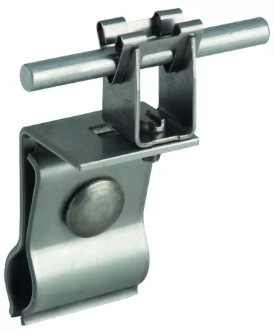 Wsporniki dachowe do mocowania dodatkowych urządzeń piorunochronnych jak np. przewody odgromowe na dachach metalowych. Wykonanie na dachy z okrągłym rąbkiem stojącym, ze wspornikiem DEHNgrip, luźne prowadzenie przewodu.