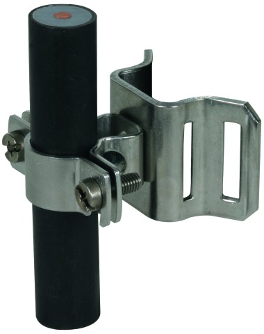 Wspornik do przewodu ze stali nierdzewnej do przewodu HVI, do mocowania na rurach lub masztach antenowych np. za pomocą obejmy taśmowej (art. nr 106 323).