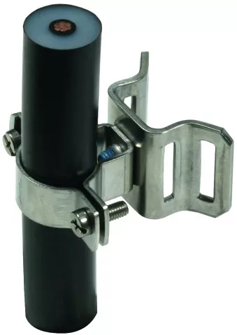 Wspornik do przewodu ze stali nierdzewnej do przewodu HVI power, do mocowania na rurach lub masztach antenowych np. za pomocą obejmy taśmowej (art. nr 106 323).