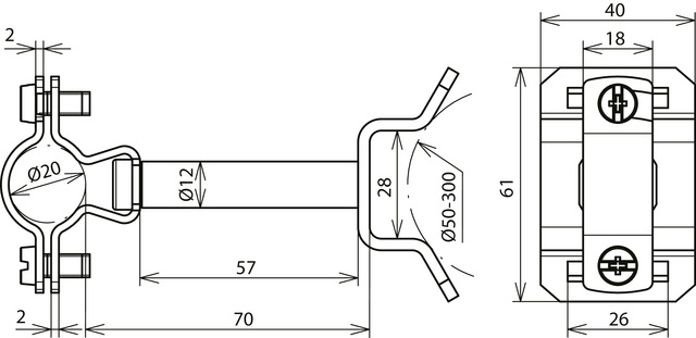 Wspornik P70 do przewodu HVI o śr. 20 mm do stref Ex, wys. 70 mm, do montażu na rurę o śr. 50-300 mm, stal nierdzewna LH ZS 20 EX P70 SBB V2A