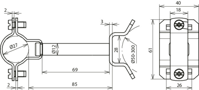 Wspornik P85 do przewodu HVI o śr. 27 mm do stref Ex, wys. 85 mm, do montażu na rurę o śr. 50-300 mm, stal nierdzewna LH ZS 27 EX P85 SBB V2A