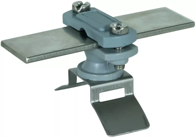 Wsporniki z tworzywa sztucznego do izolowanego mocowania prętów uziemiających do metalowych rur spustowych. Umożliwia pomiar bez demontażu. Wykonanie do drutów okrągłych lub płaskowników, sztywne prowadzenie przewodu, z tworzywa sztucznego odpornego na działanie warunków atmosferycznych, promieniowanie UV i bezhalogenowe.