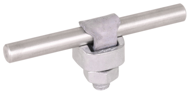 Łączniki KS spełniające wymagania normy DIN EN 62561-1, do obciążalnego prądem piorunowym podłączania drutów okrągłych, np. do profili płaskich, obejm do rur spustowych lub innych elementów instalacji odgromowej. Wykonanie jednoczęściowe, stal HDG, ze śrubą, podkładką sprężystą i nakrętką M10.