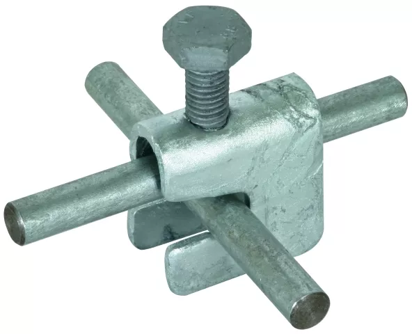 Zacisk łączący zgodnie z normą DIN EN 62561-1, do łączenia stalowych siatek zbrojeniowych lub zbrojenia z drutami okrągłymi. Wykonanie do połączeń T-kształtnych, krzyżowych i równoległych.