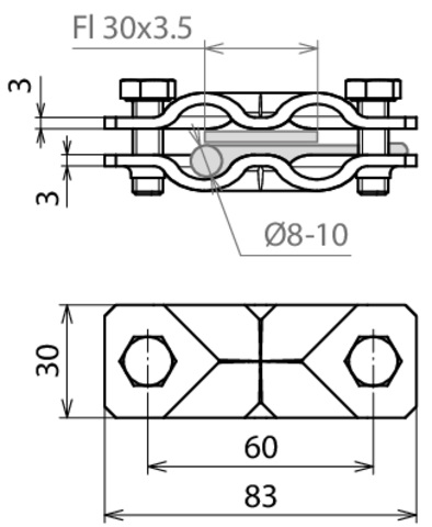 Zacisk SVP bez przekładki, do drutu 8-10 mm / płaskownika o szerokości 30 mm, stal nierdzewna SVPK 8.10 8.10 FL30 V4A