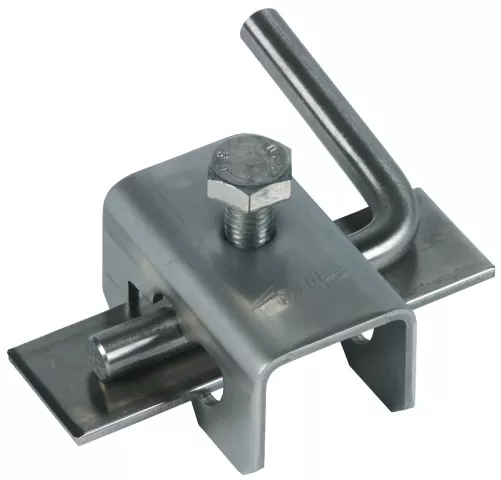 Zaciski łączące spełniające wymagania normy DIN EN 62561-1, do łączenia drutów okrągłych i płaskowników w fundamencie betonowym. Wykonanie z pojedynczą śrubą, do połączeń T-kształtnych, krzyżowych i równoległych, bez konieczności przeciągania przewodu.