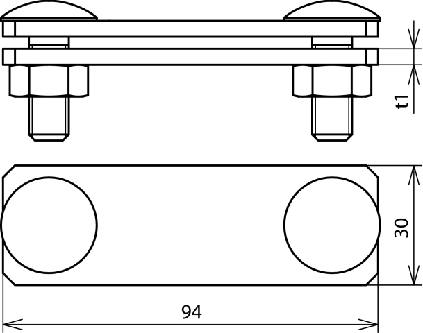 Zacisk SV do dwóch płaskowników o szer. 30 mm, stal HDG SVK FL30 STTZN