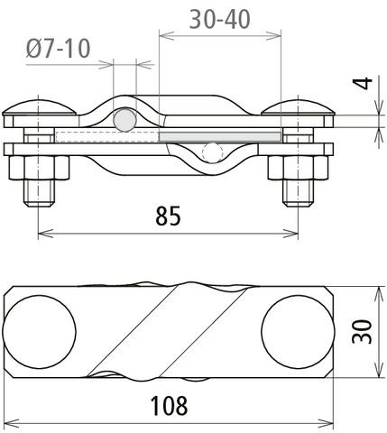 Zacisk SV do drutu o śr. 7-10 mm / płaskownika o szer. 30-40 mm, możliwość łączenia drut-drut, drut-płaskownik, płaskownik-płaskownik, stal HDG SVK 7.10 7.10 FL40 STTZN