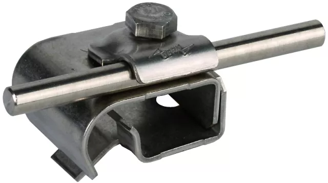 Zacisk rynnowy spełniający wymagania normy DIN EN 62561-1, do łączenia drutów z rąbkiem rynny dachowej. Wykonanie z ramą zaciskową, prowadzenie przewodu wzdłużne lub poprzeczne.