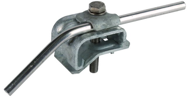 Zacisk rynnowy spełniający wymagania normy DIN EN 62561-1, do łączenia drutów z rąbkiem rynny dachowej. Wykonanie z pojedynczą śrubą z ramą zaciskową, prowadzenie przewodu wzdłużne.