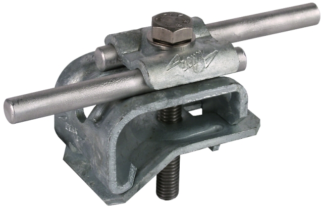 Zacisk rynnowy spełniający wymagania normy DIN EN 62561-1, do łączenia drutów z rąbkiem rynny dachowej. Wykonanie z pojedynczą śrubą z podwójną płytką dociskową, prowadzenie przewodu wzdłużne.