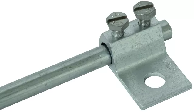 Zacisk wtykowy spełniający wymagania normy DIN EN 62561-1, do przyłączania drutów do elementów konstrukcyjnych. Wykonanie ze śrubami M6.