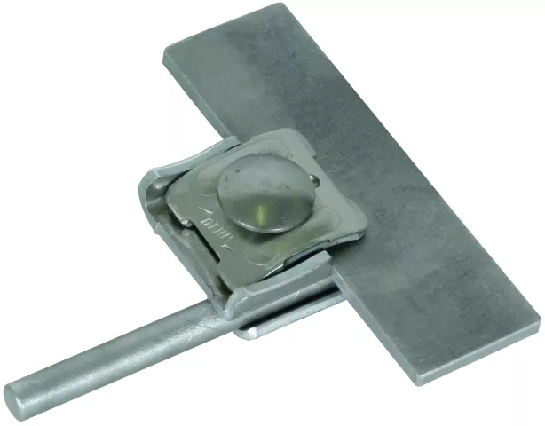 Zacisk krawędziowy spełniający wymagania normy DIN EN 62561-1, do łączenia drutów okrągłych z rąbkami. Wykonanie z ramą zaciskową, prowadzenie przewodu wzdłużne lub poprzeczne.